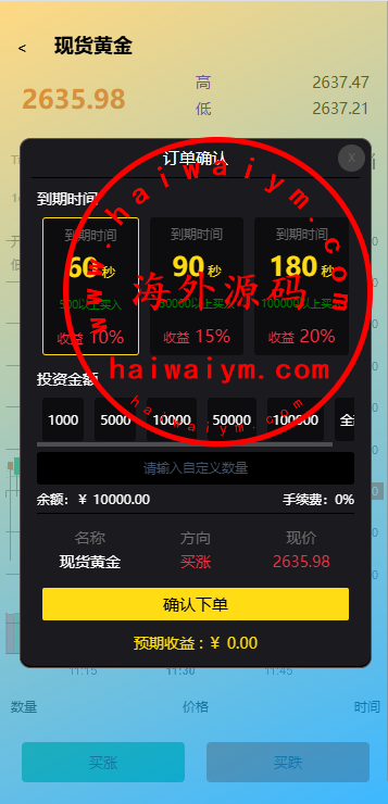 多语言虚拟币黄金期货交易微盘系统,支持实名认证