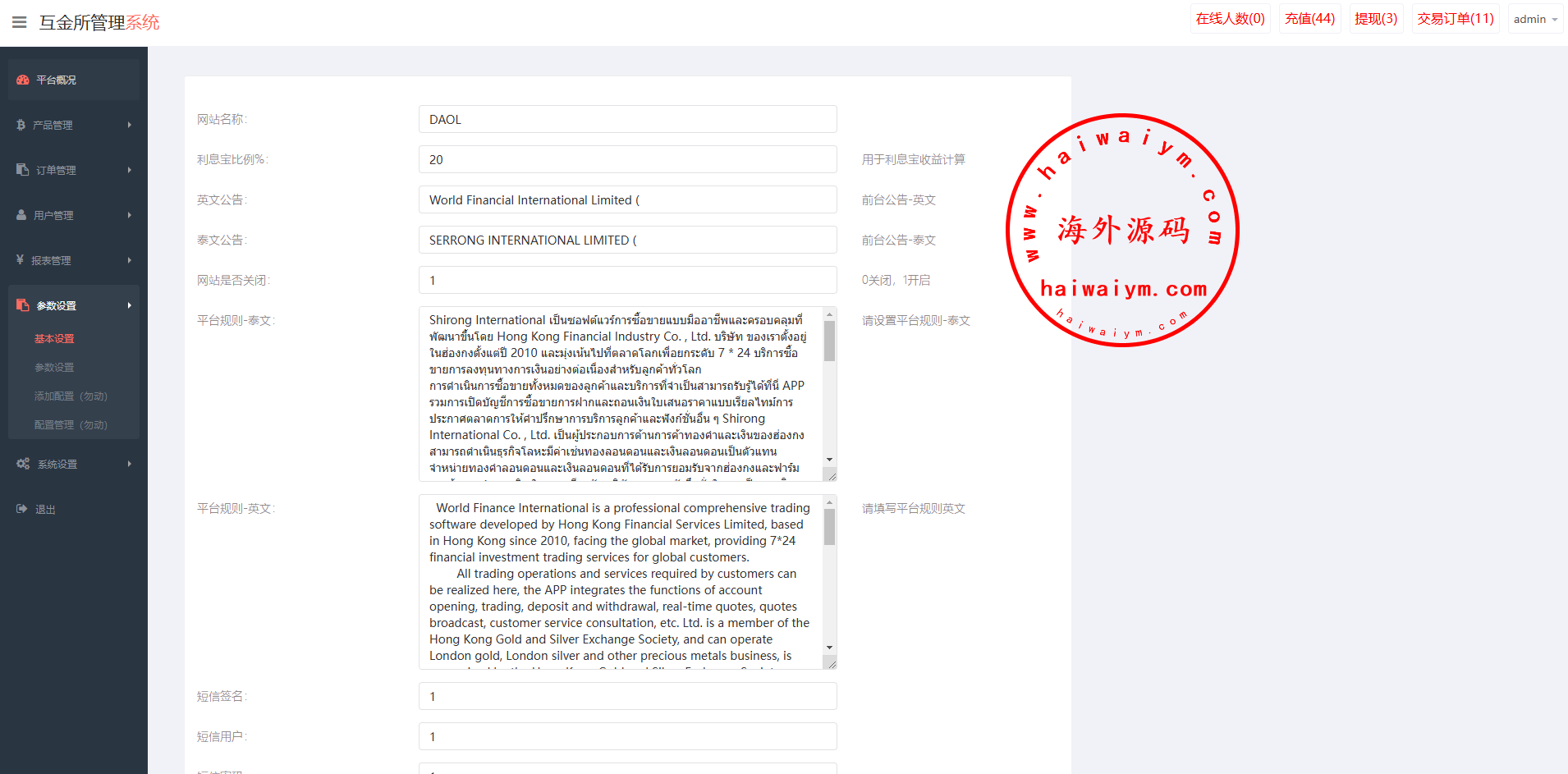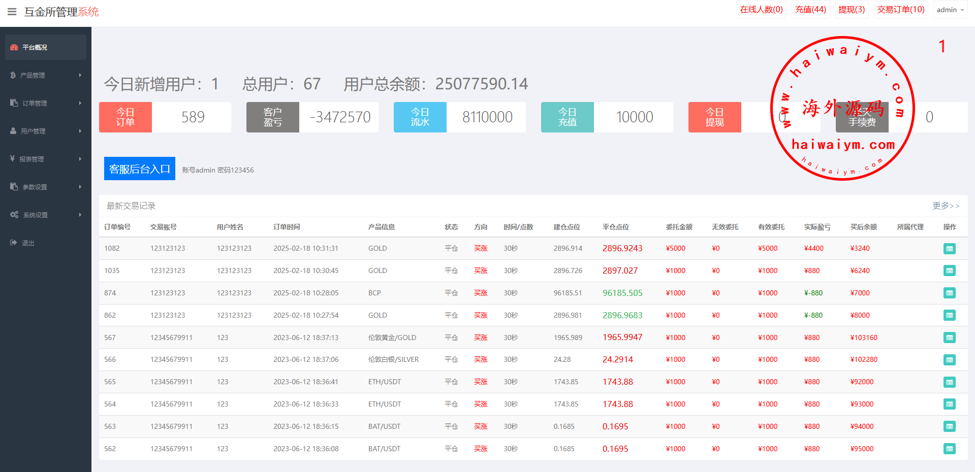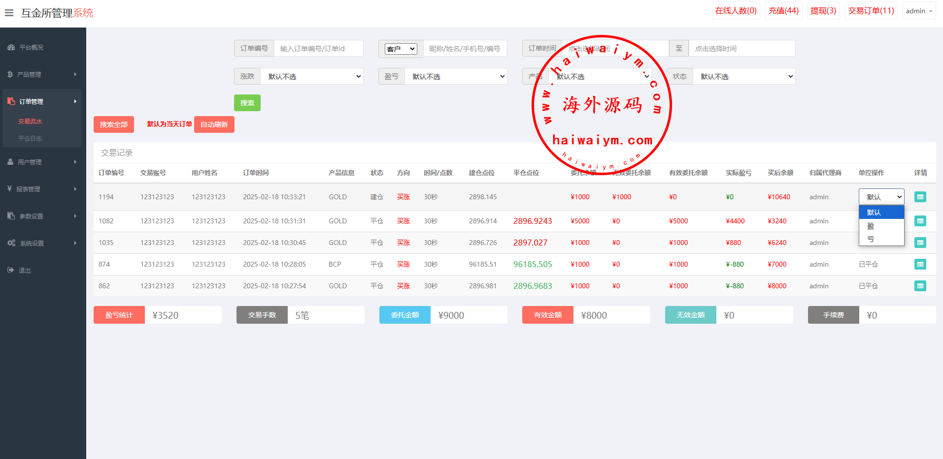 海外FX7综合外汇交易所系统/合约挂单交易/秒合约/K线全局控