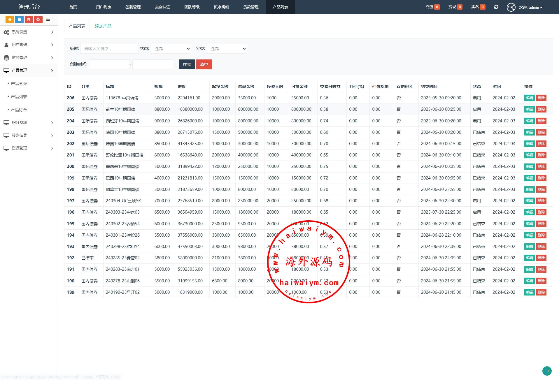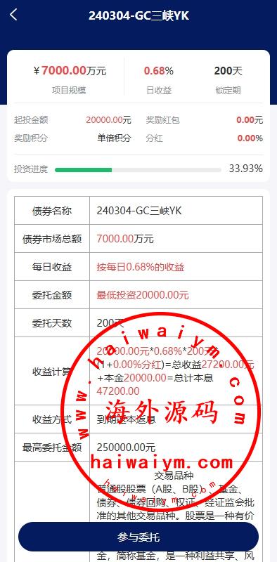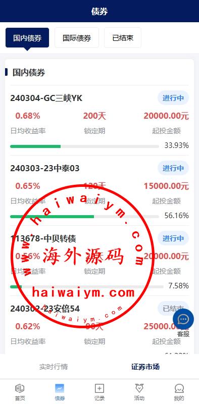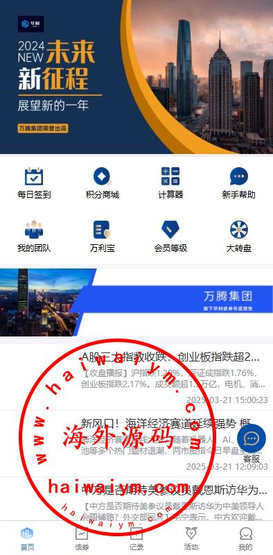 功能支持:债券投资购买、贷款、签到、收益计算器、积分商城等功能