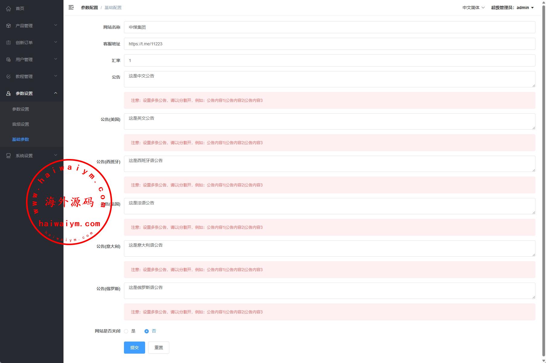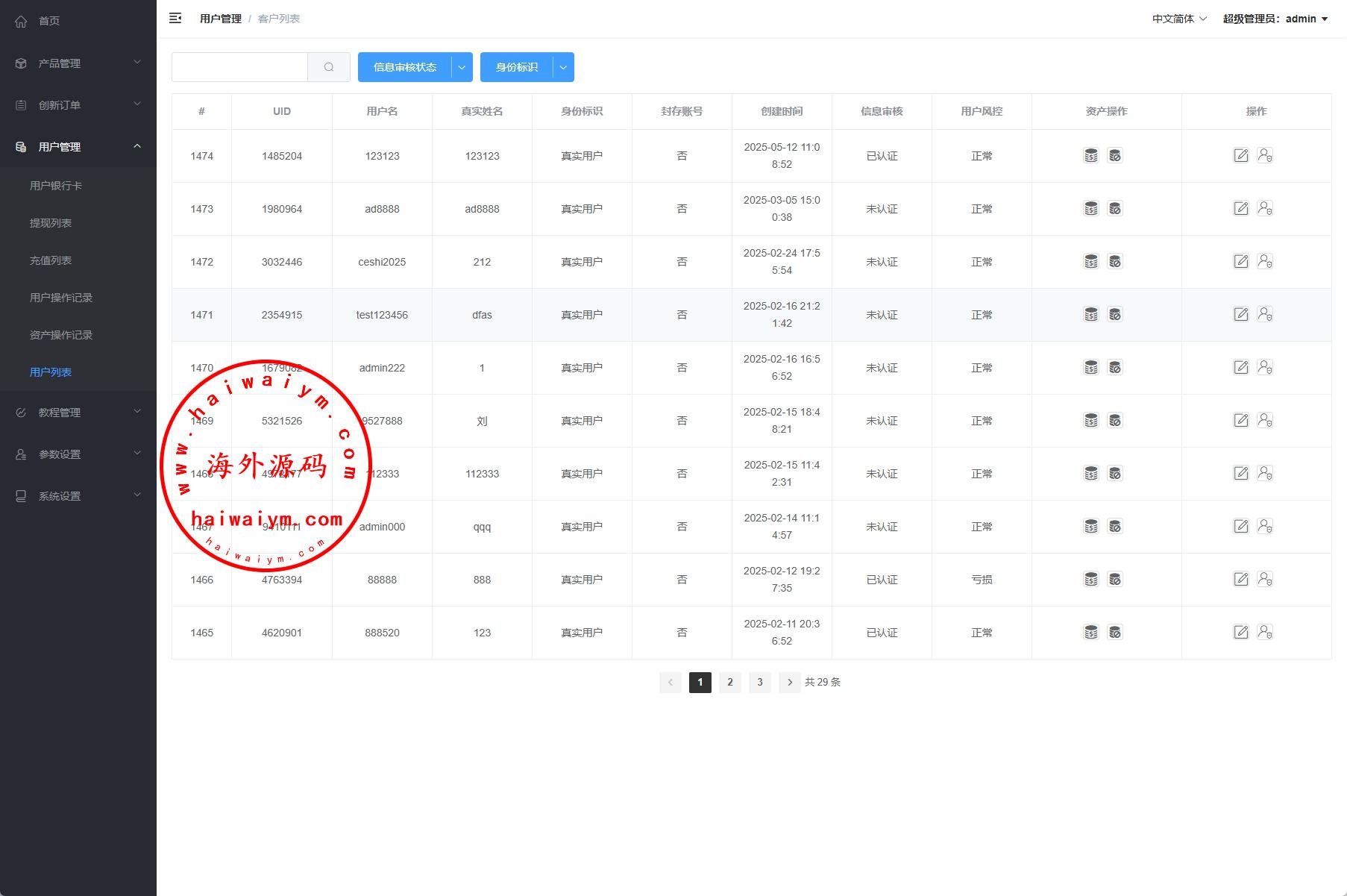 前端多语言,支持实名认证交易限制,支持用户订单单控