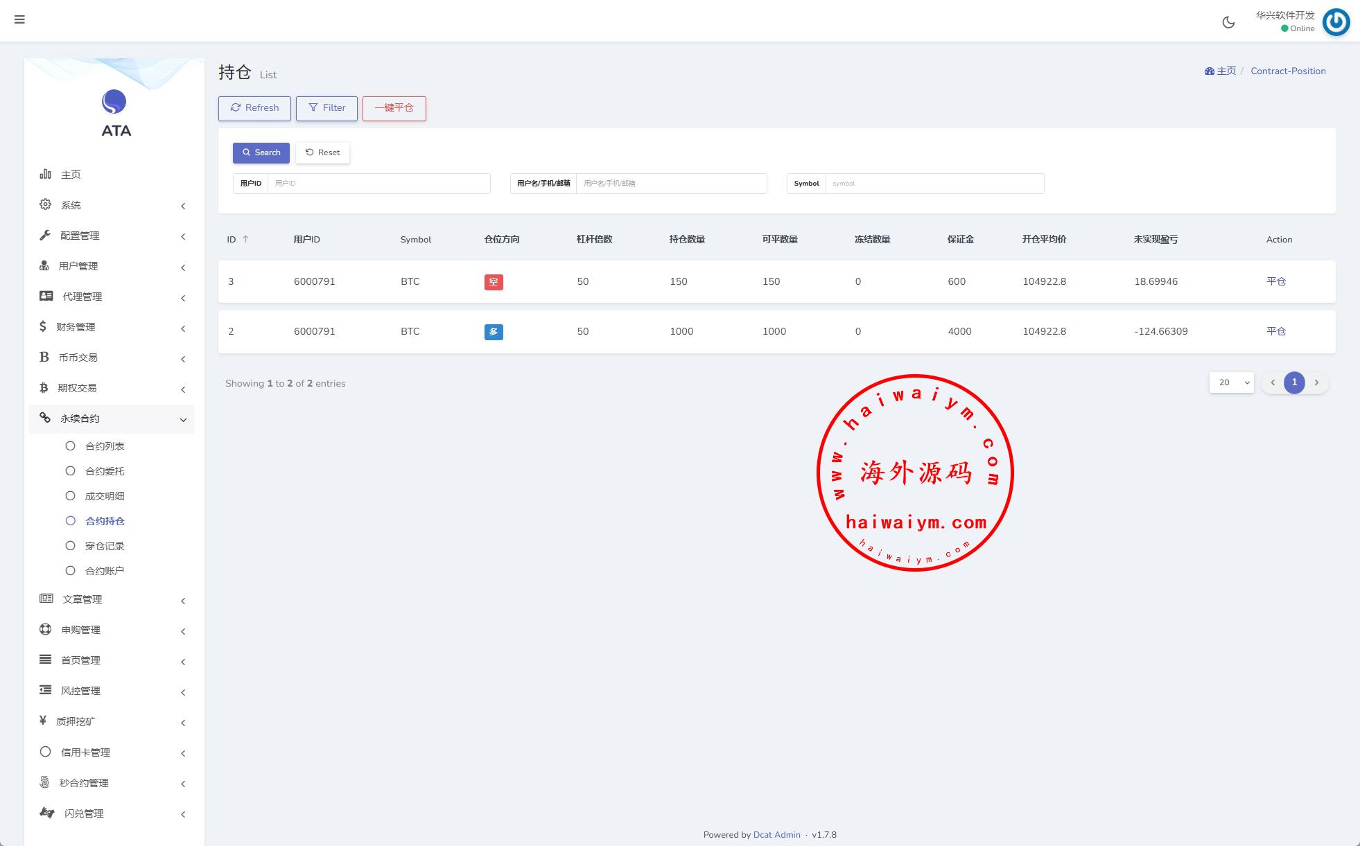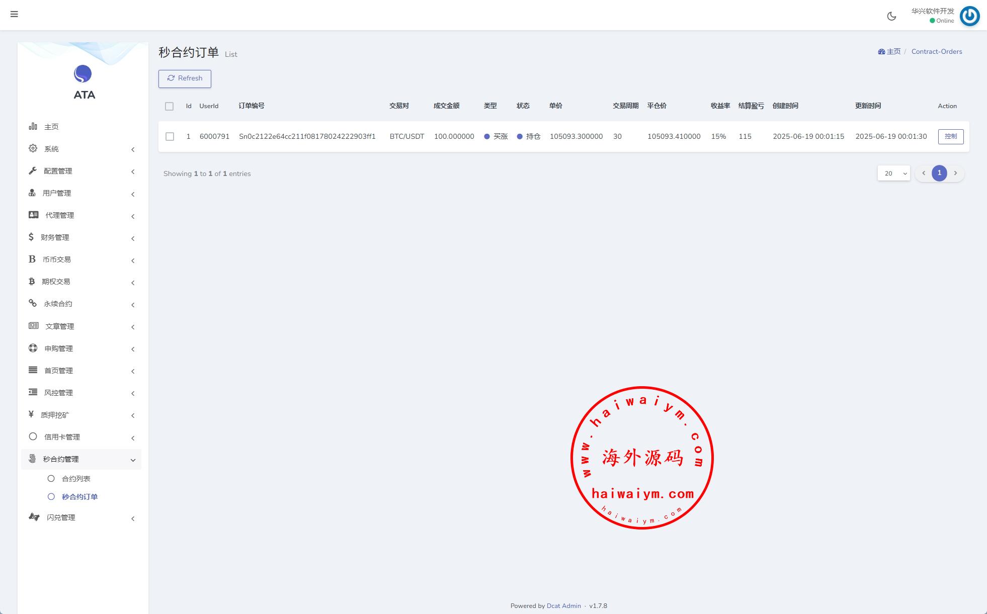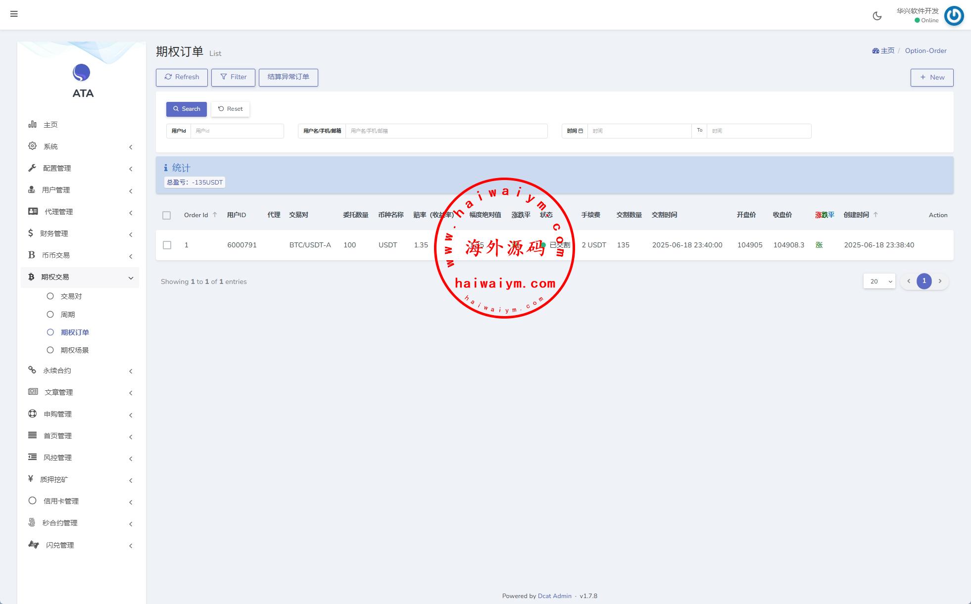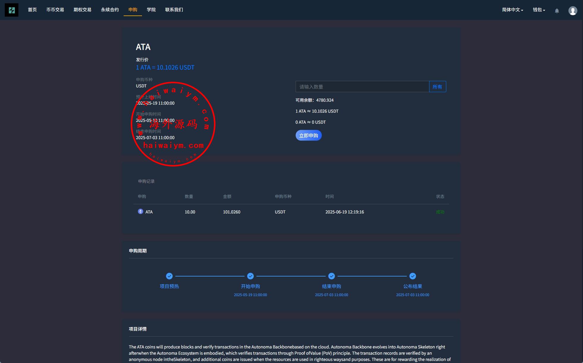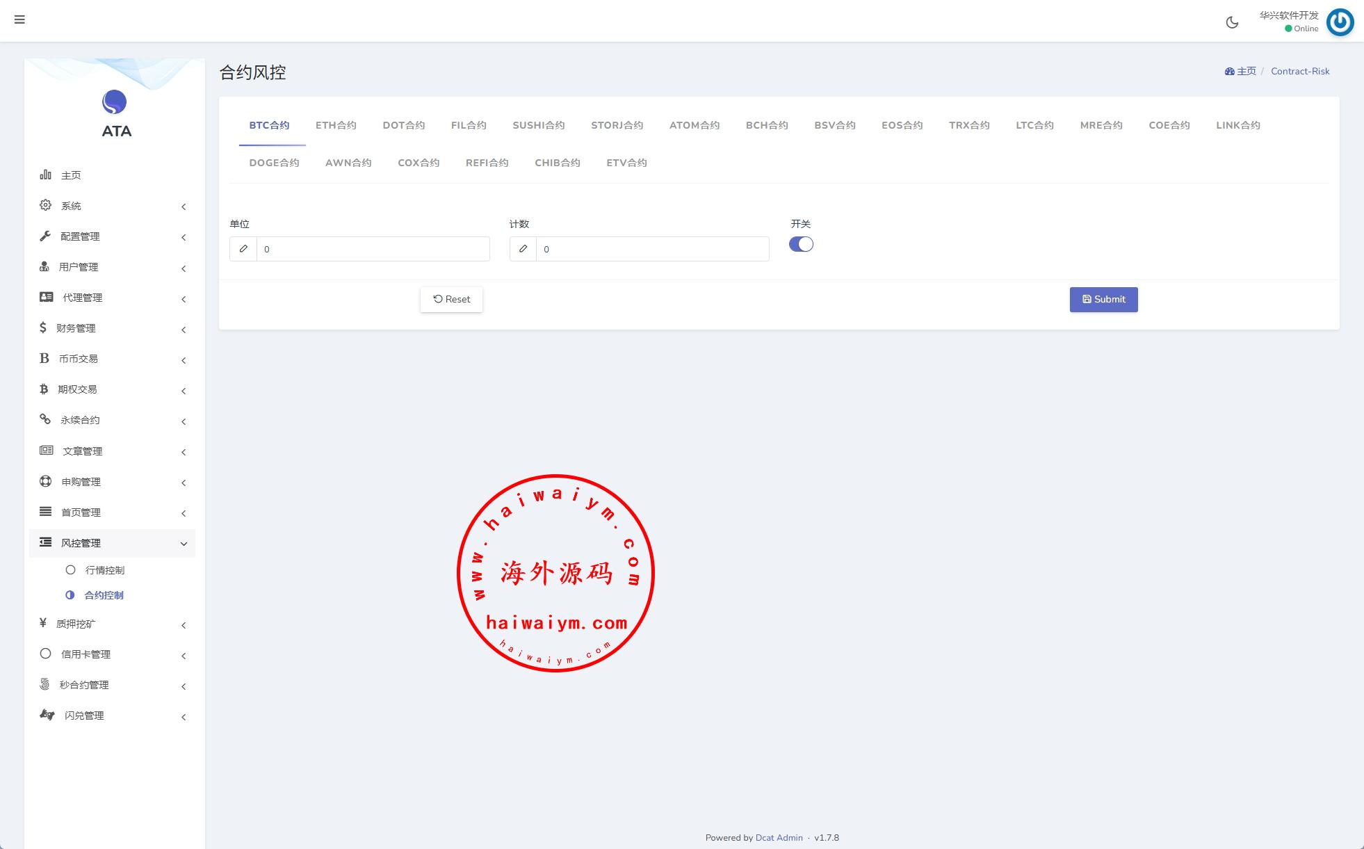 海外交易所系统/合约/期权/质押/秒合约/插针控制/申购
