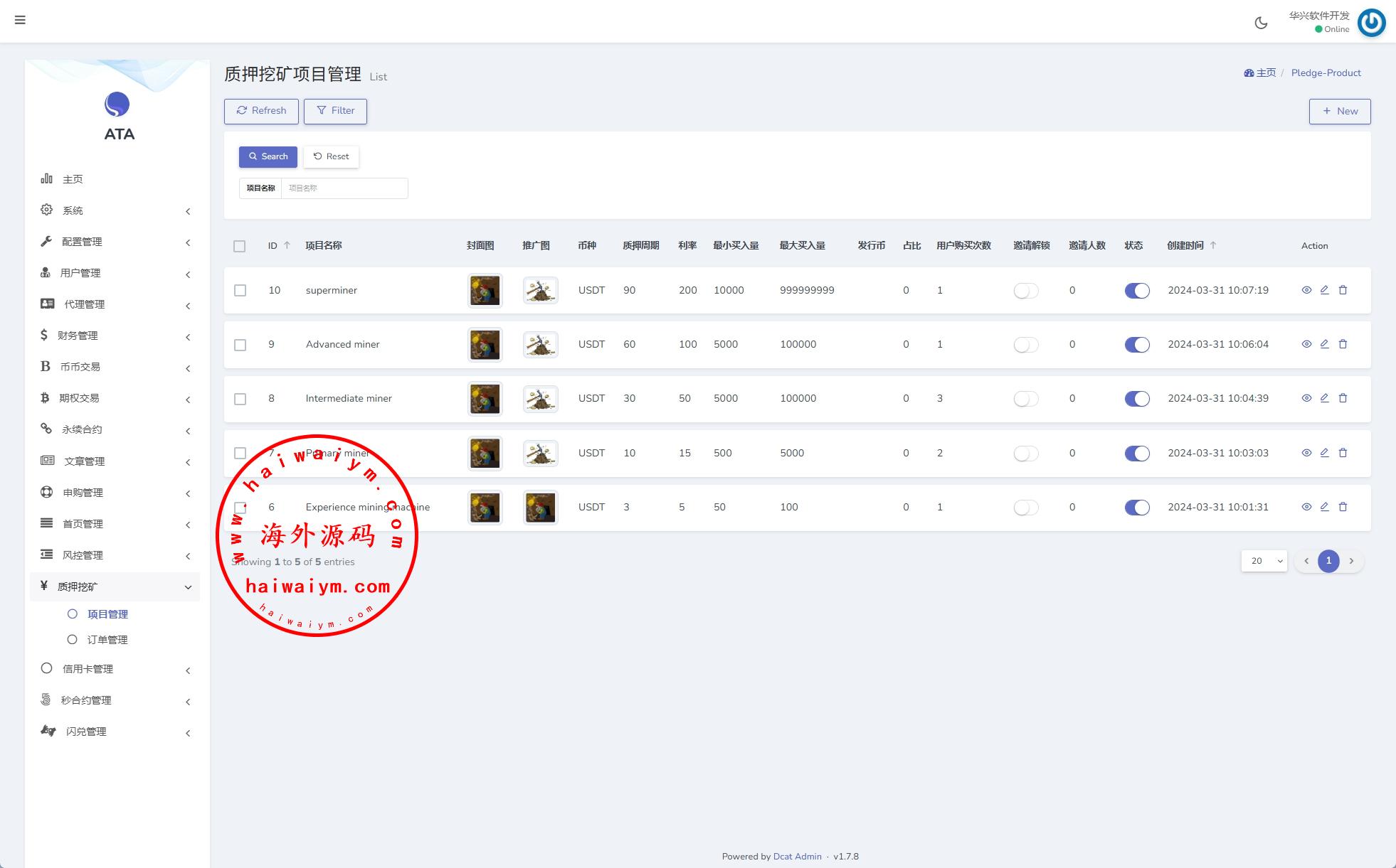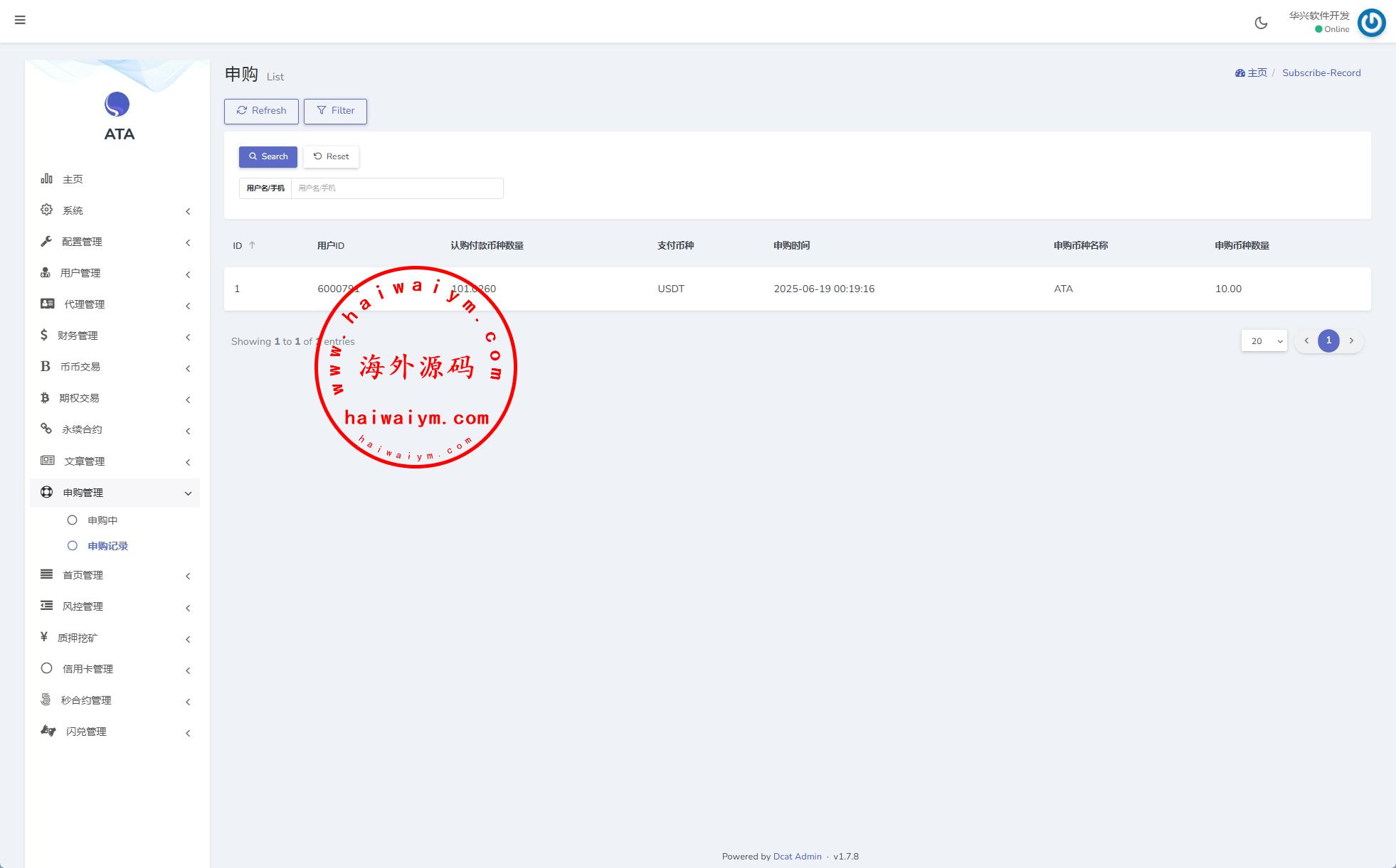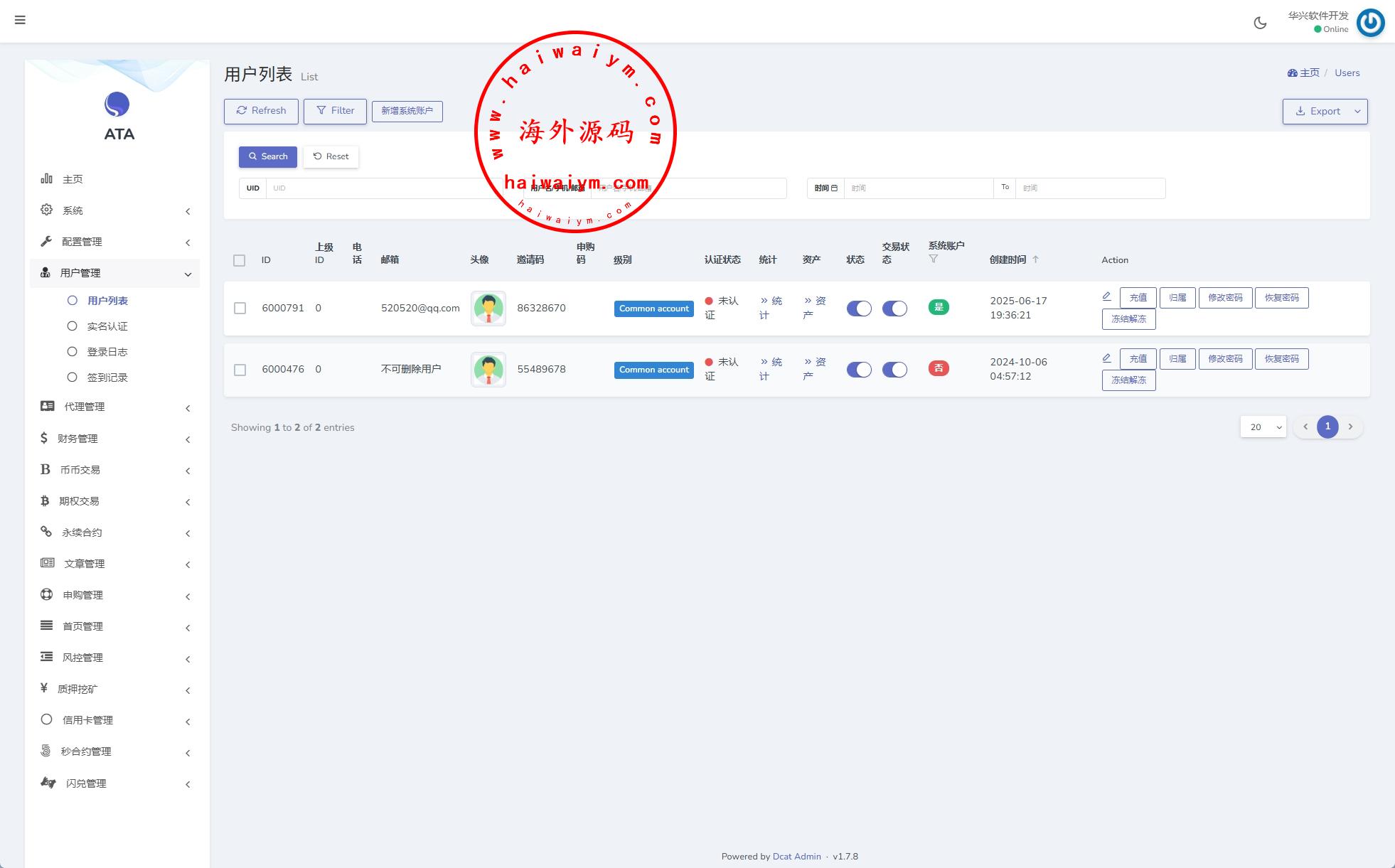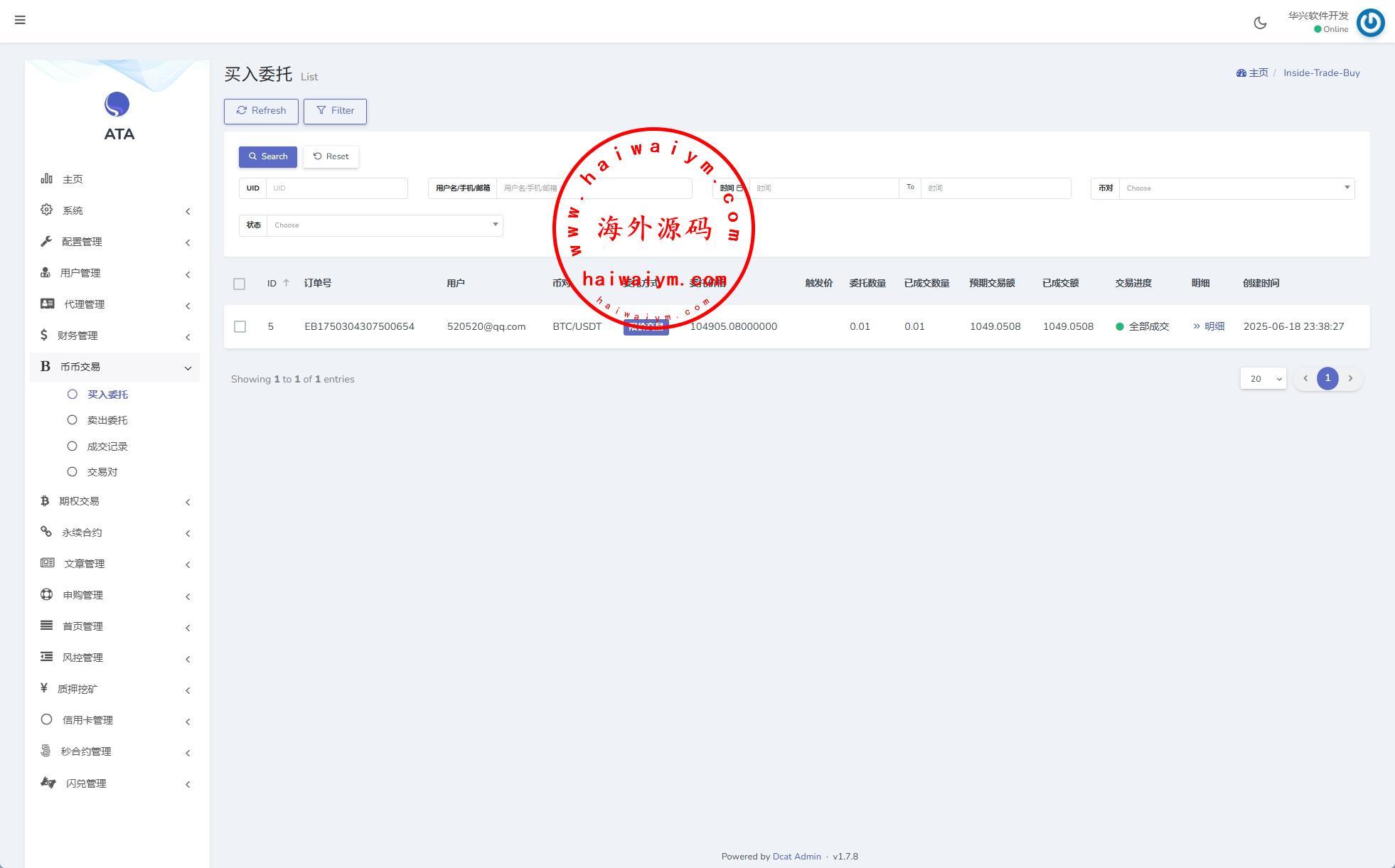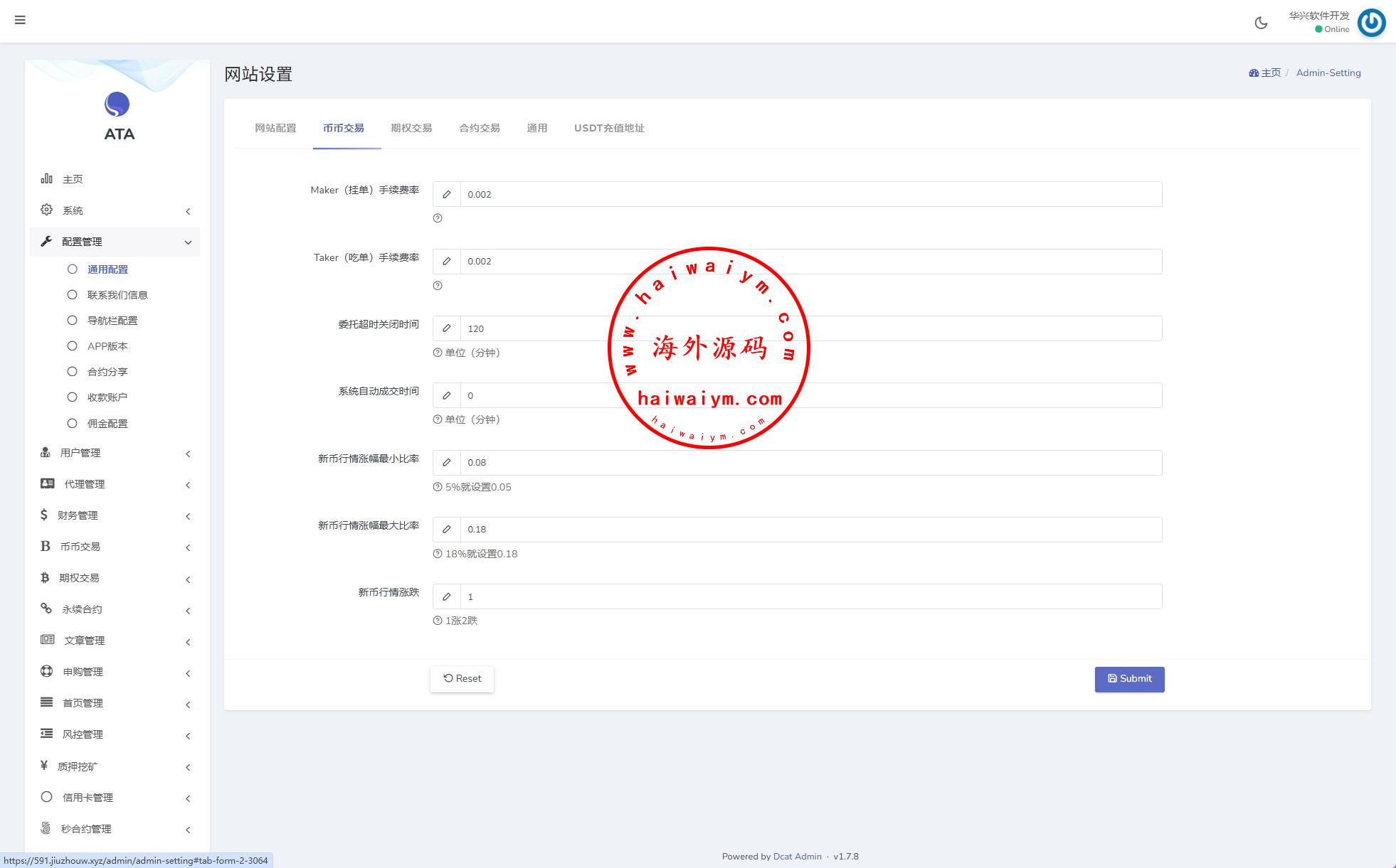 海外交易所系统/合约/期权/质押/秒合约/插针控制/申购
