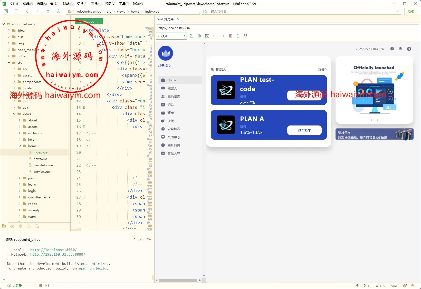 多端分离VUE开发,AI智能理财资金盘算力机器人投资复利盘可二开其他类型