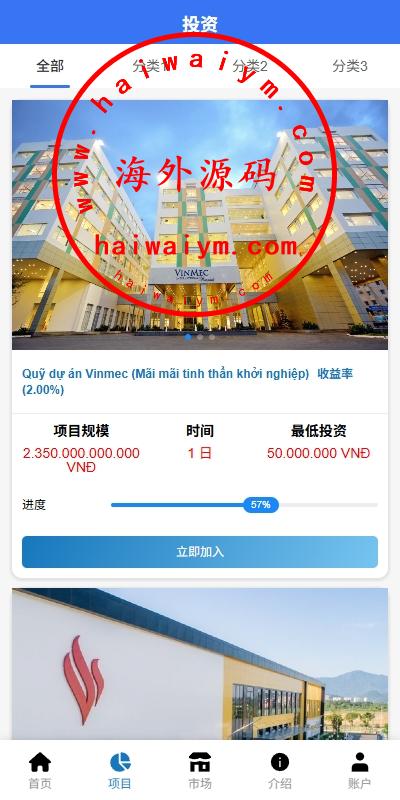 海外投资众筹系统/越南投资理财/前端VUE