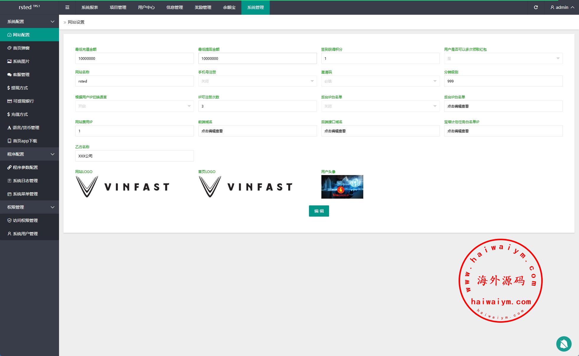 前端VUE开发,后端thinkphp开发带教程源码