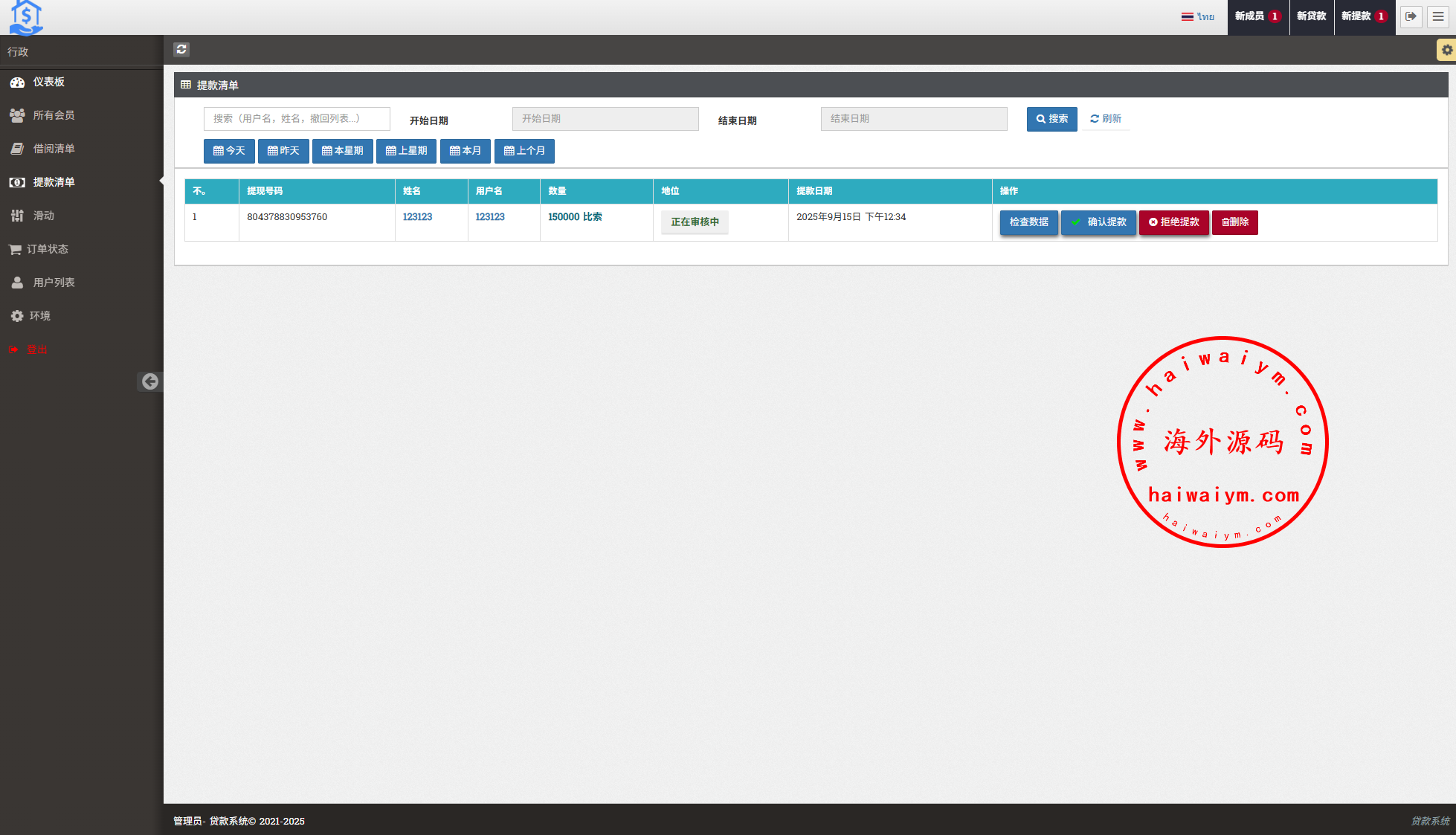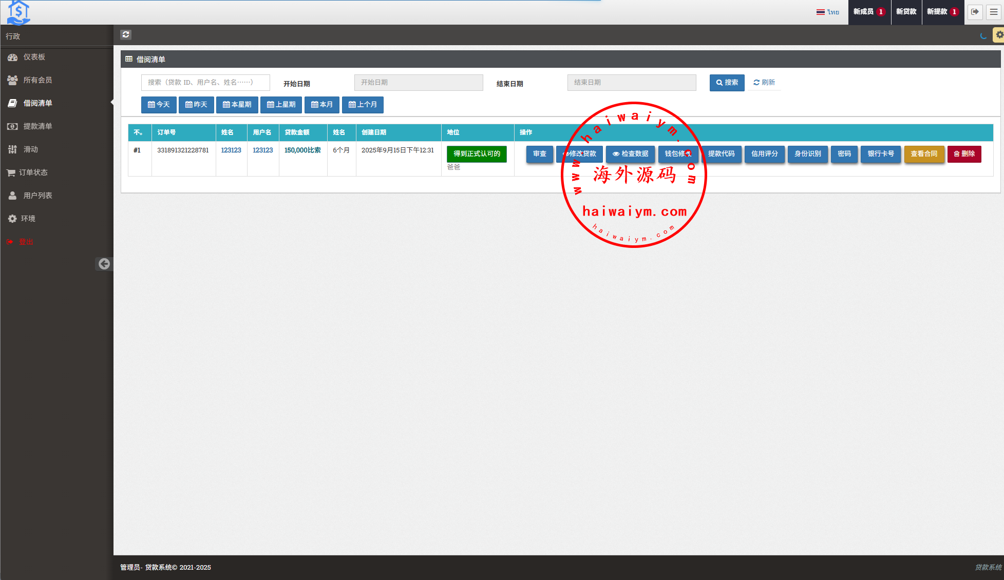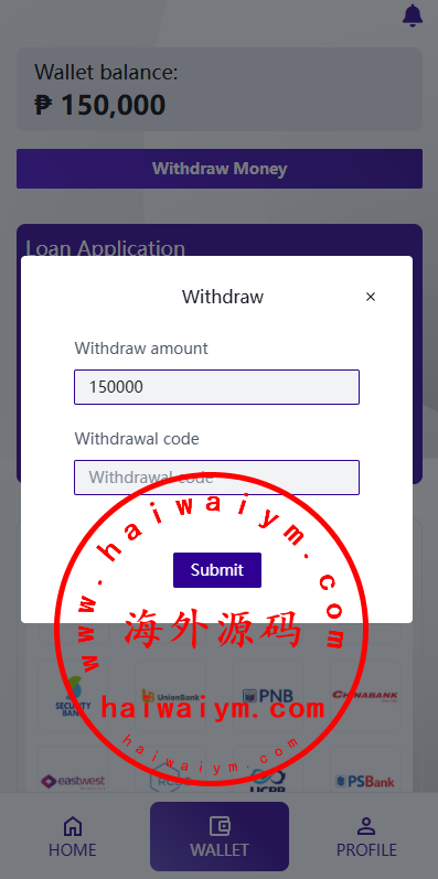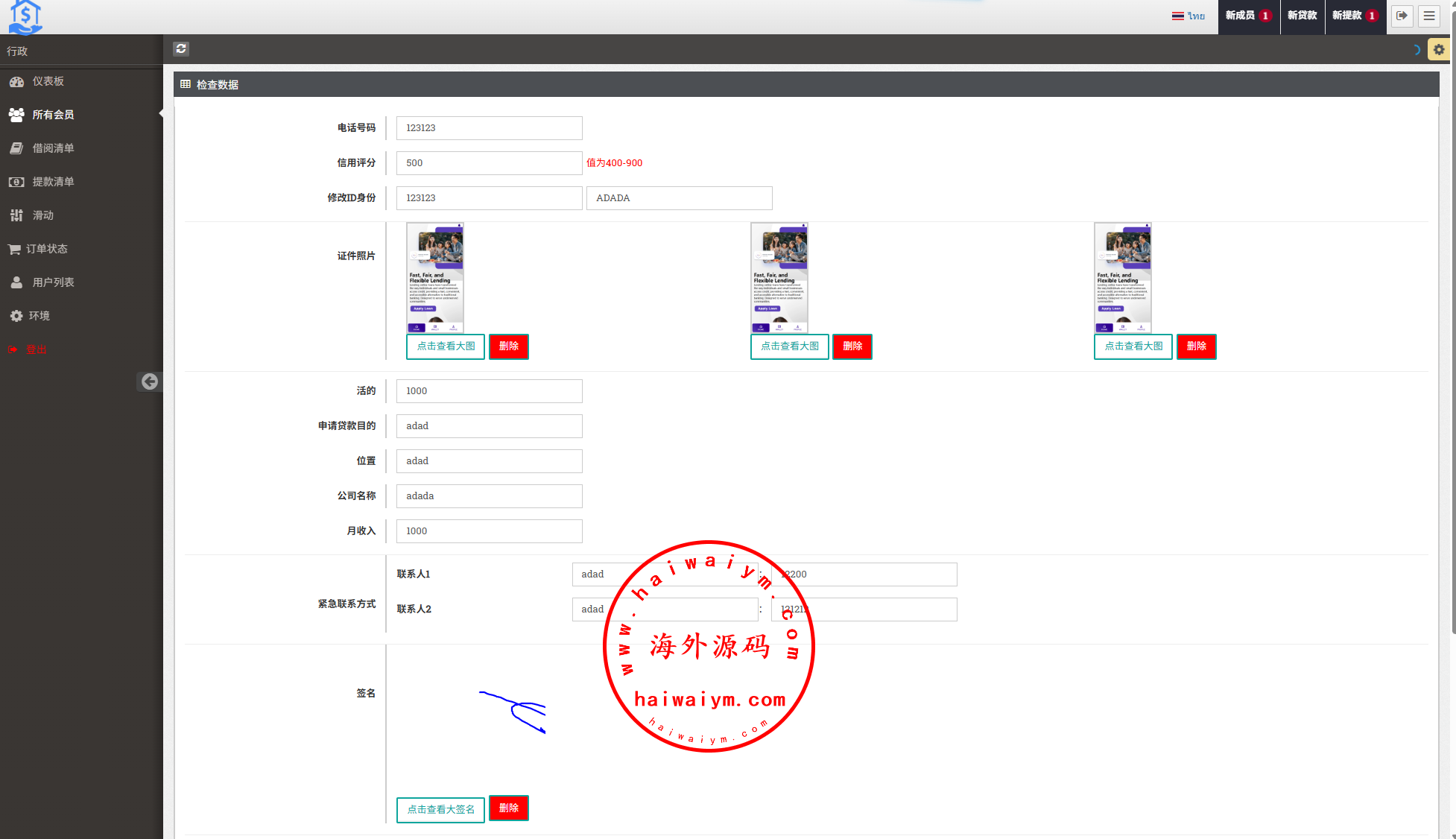 海外贷款平台/小额贷款系统/信用分/合同/提现码