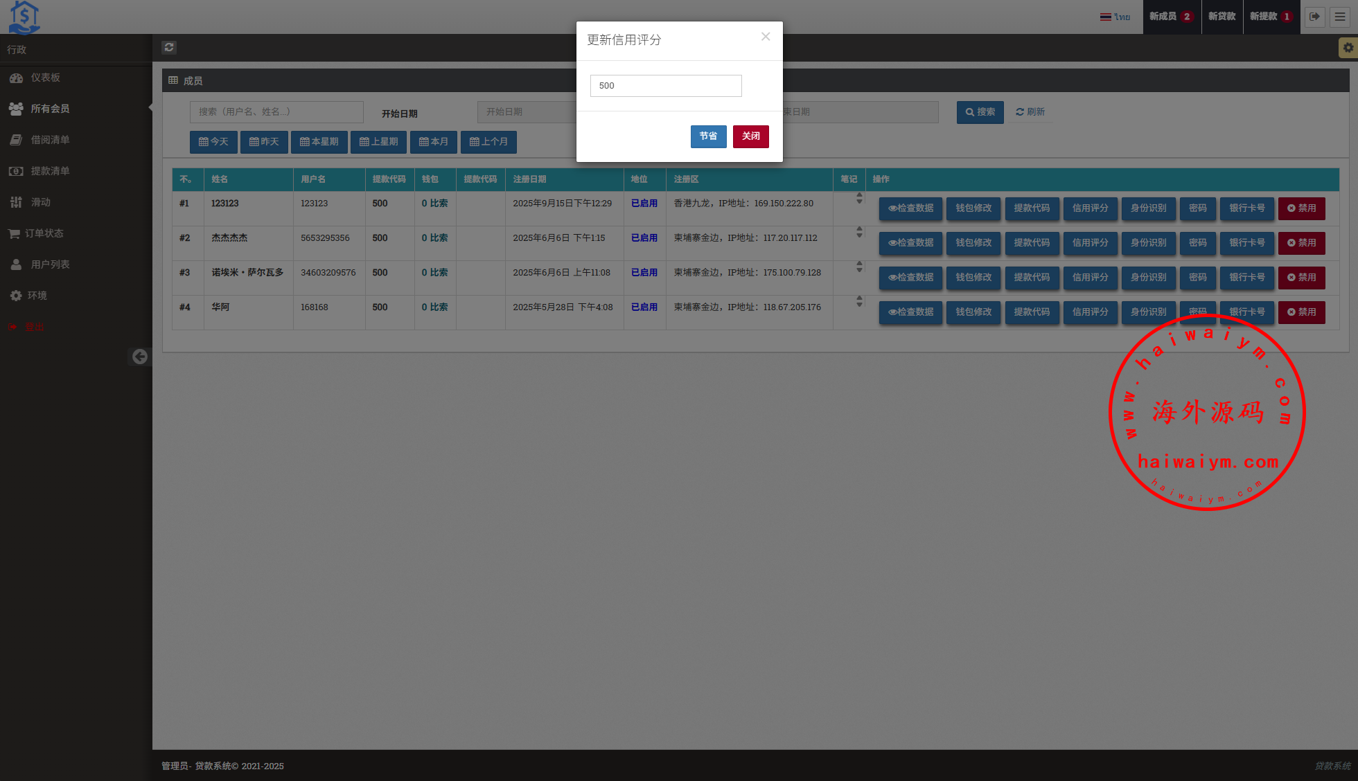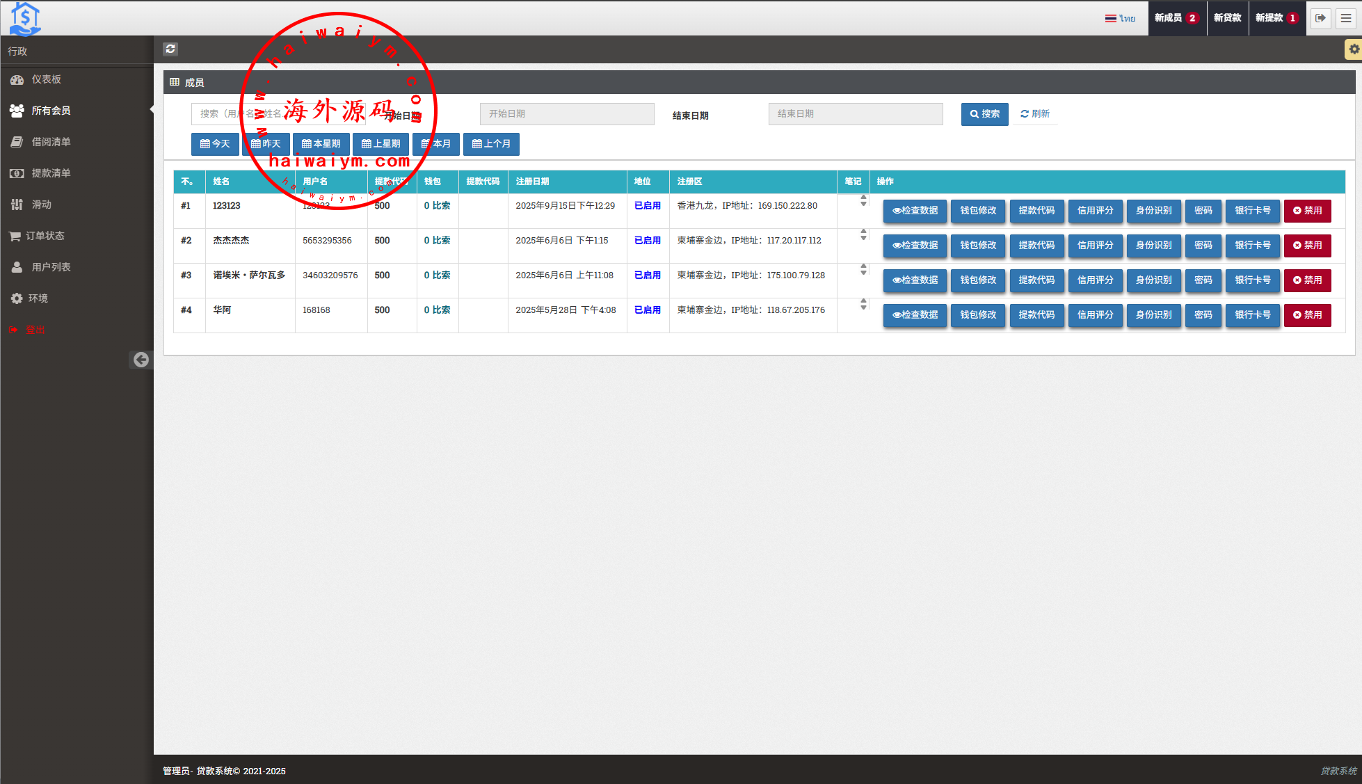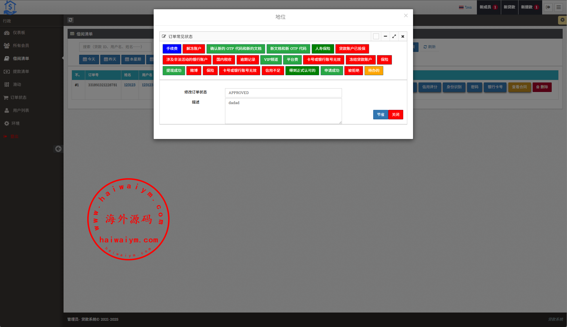 海外贷款平台/小额贷款系统/信用分/合同/提现码