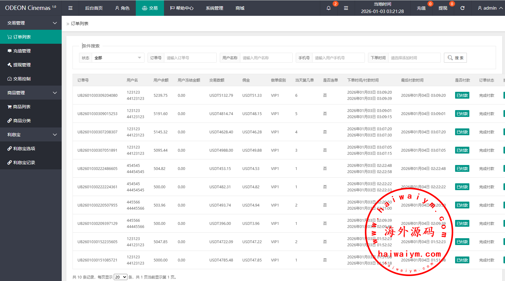 系统功能:重置订单,超级打针,派单,提现地址审核,登陆日志在线状态等功能