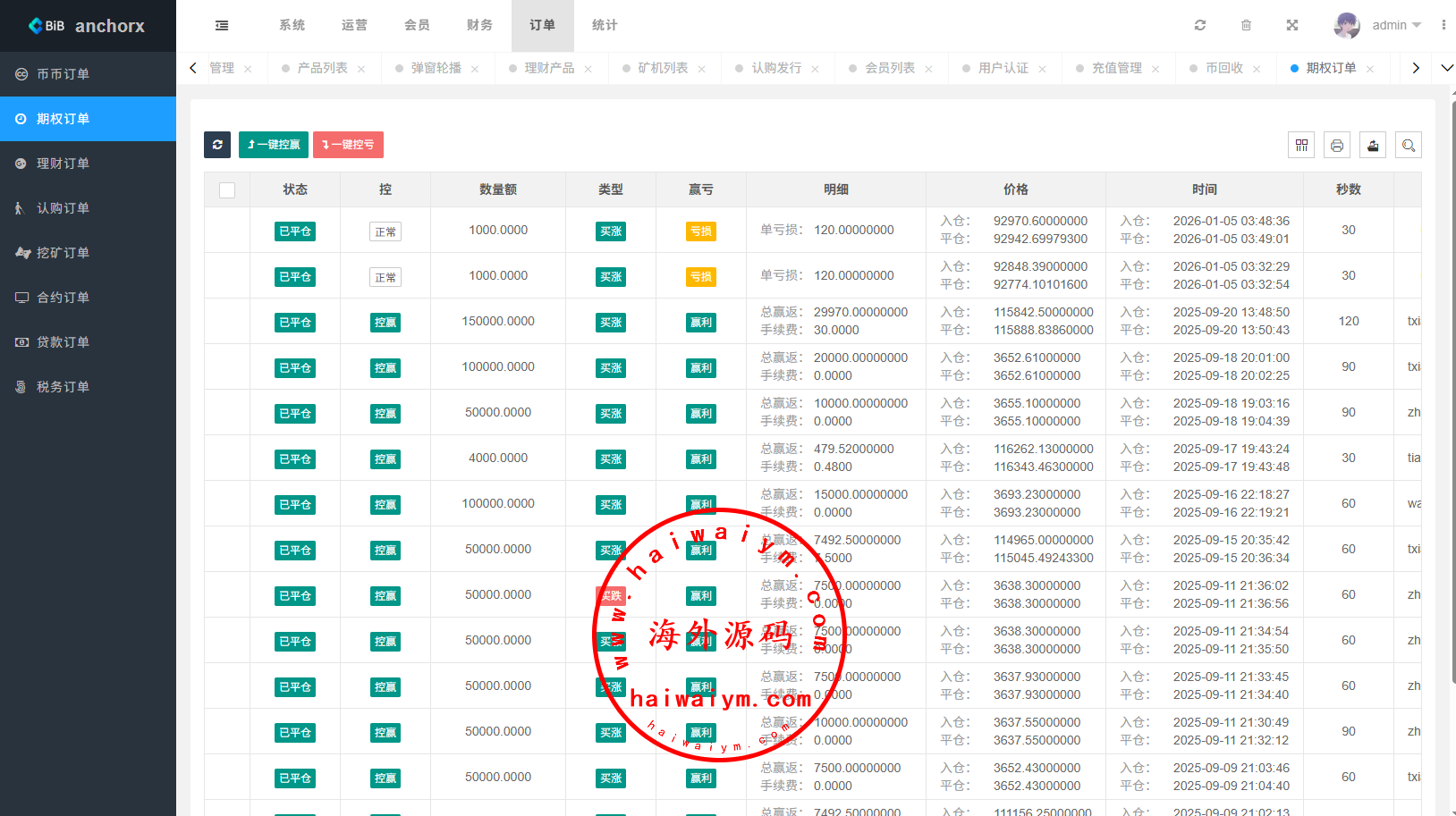 系统功能:币币交易,期权交易,永续合约,申购,贷款,矿机理财