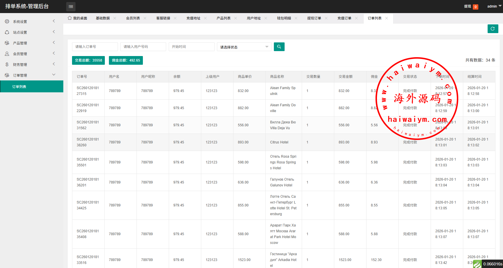 多语言酒店抢单刷单系统/卡单连单/信用分/海外刷单
