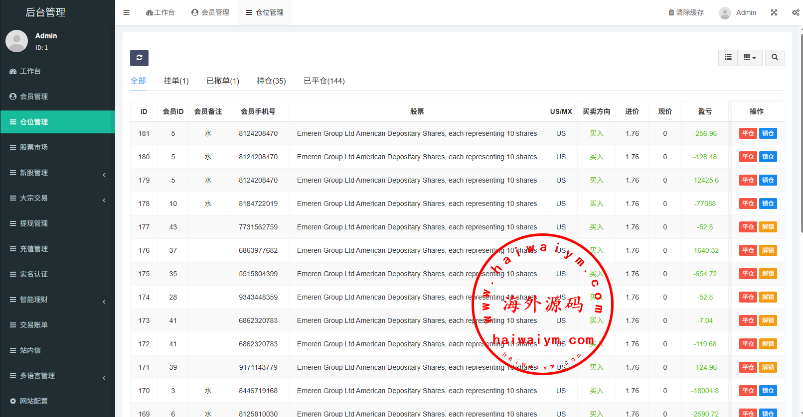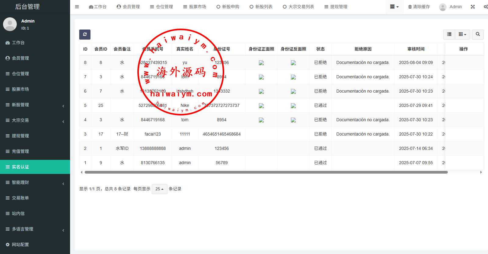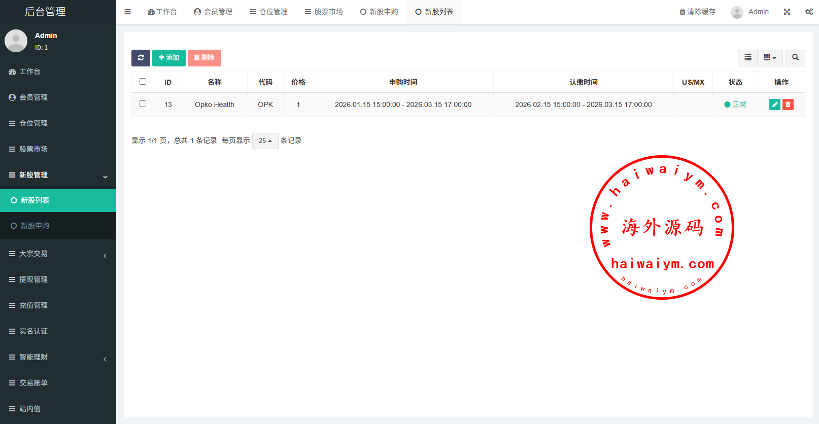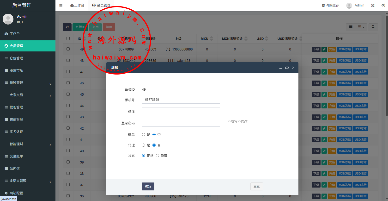 支持代理后台,usdt充值,大宗交易,新股认购,产品理财等功能