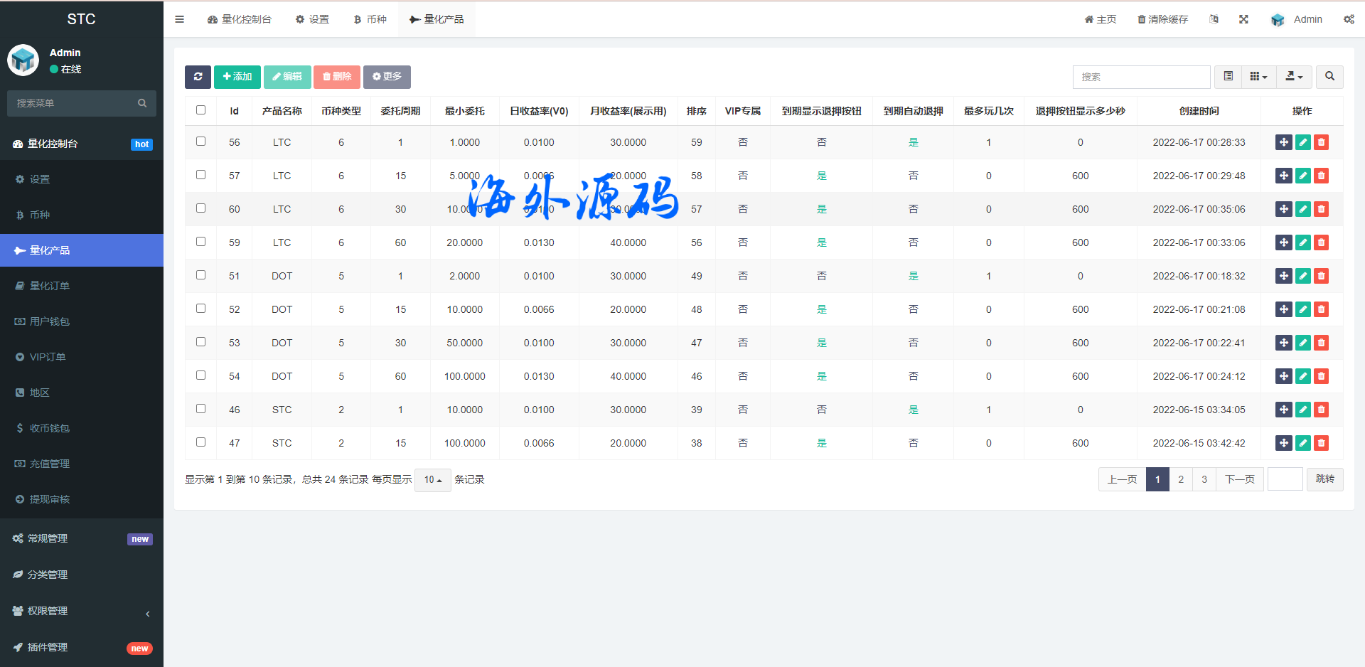 全新开发的区块链量化交易系统,前端uinapp可生成原生app,后端fastadmin框架,接口端是nodejs