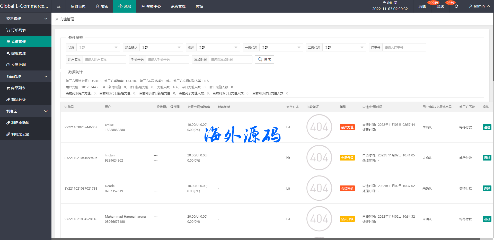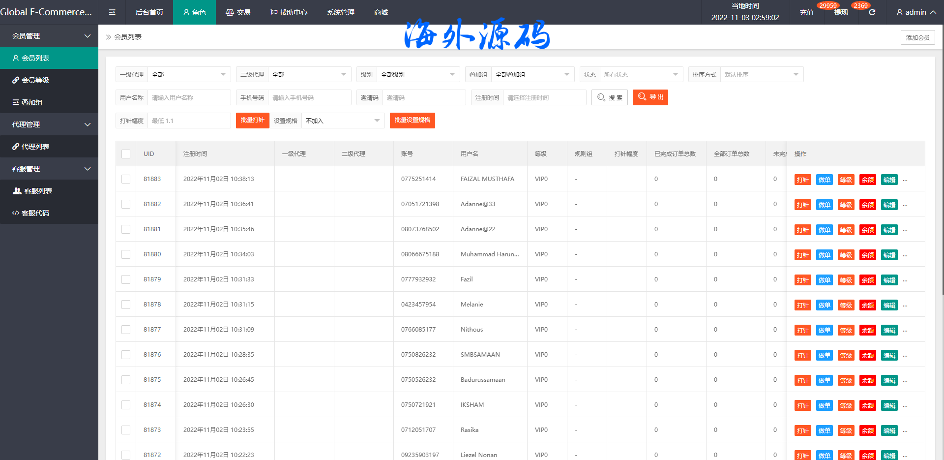 5.三级分销,带客服,等级优先,充值提现优先完美后台查询功能