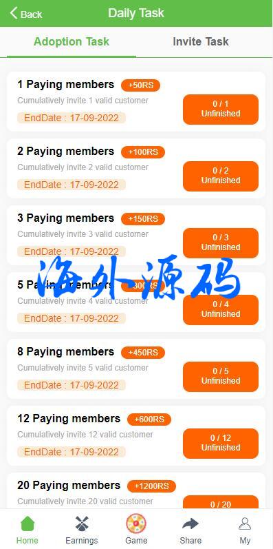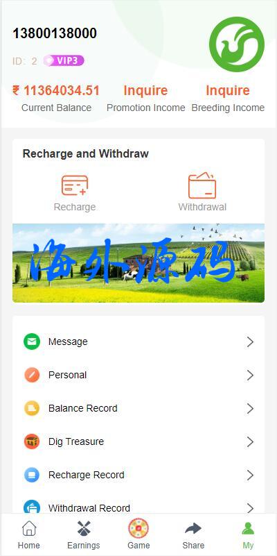 完美版海外投资理财系统/养鸭养牛投资/裂变任务推广/注册奖励每日任务